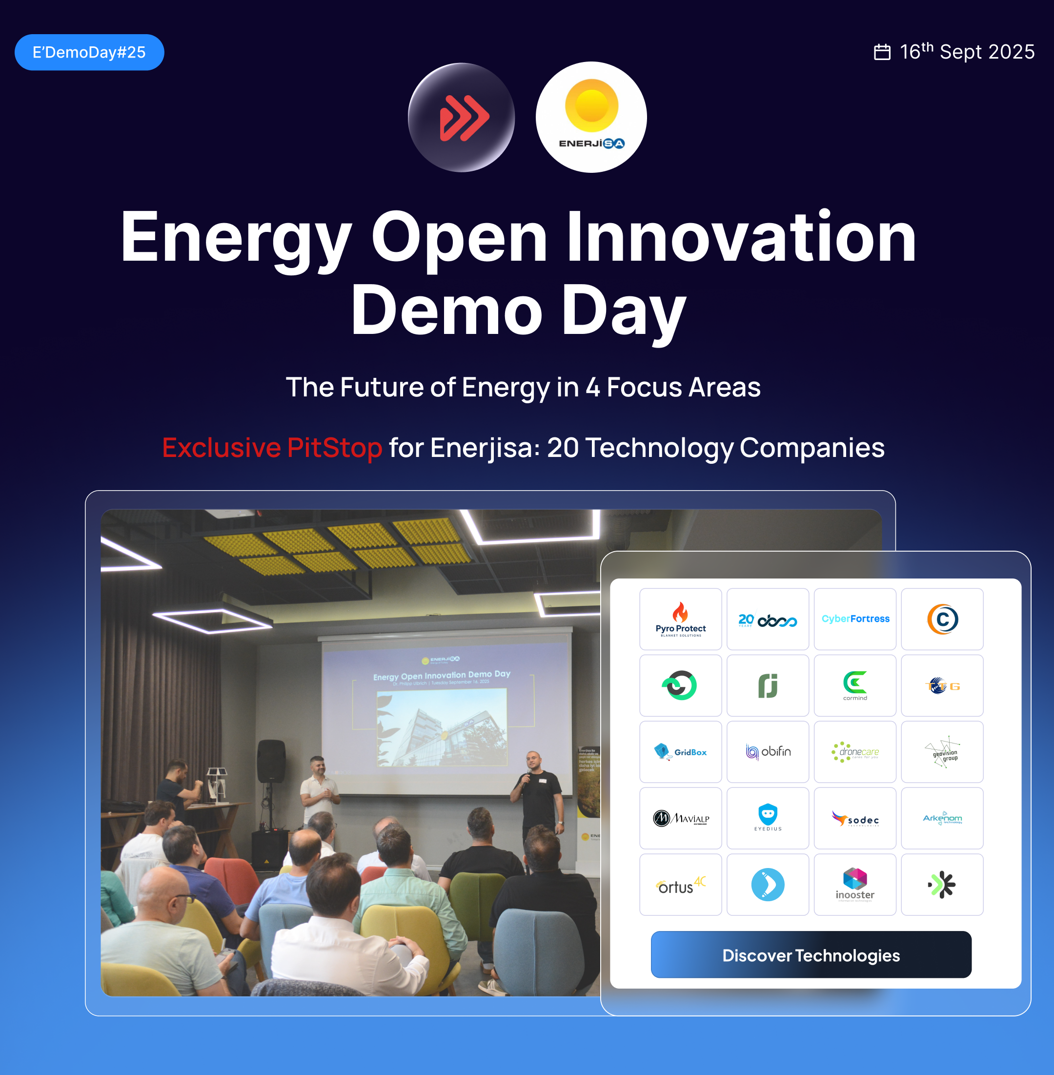 EnerjiSA PitStop “Energy Open Innovation Demoday” brought together 20 innovative technology companies to showcase energy solutions across four focus areas: infrastructure, efficiency, field operations, and experience management.